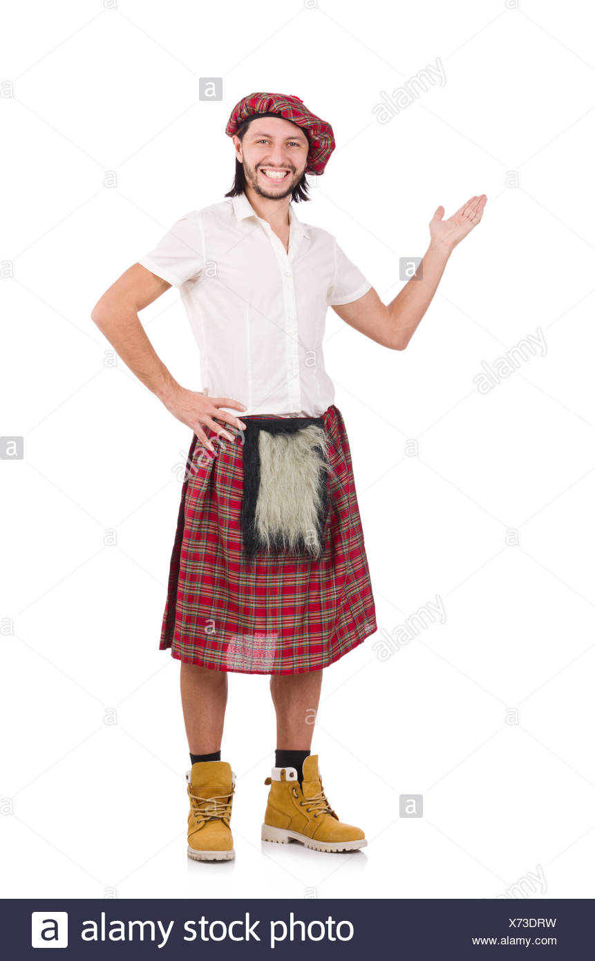 Avoir L Homme En Jupe Ecossaise Isolated On White Banque D Images Photo