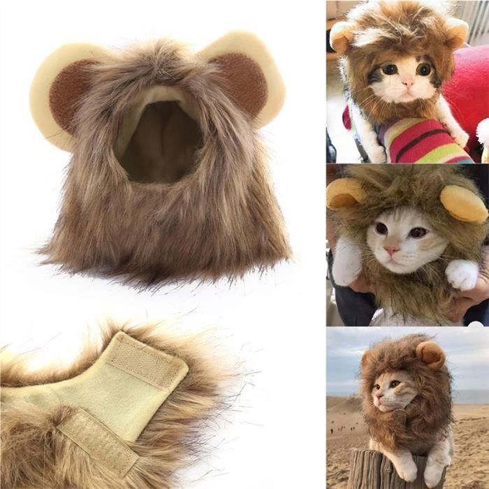 Scarica Gratis Drole Petit Chien Chat Cosplay Lion Perruque Tete Chapeau Avec
