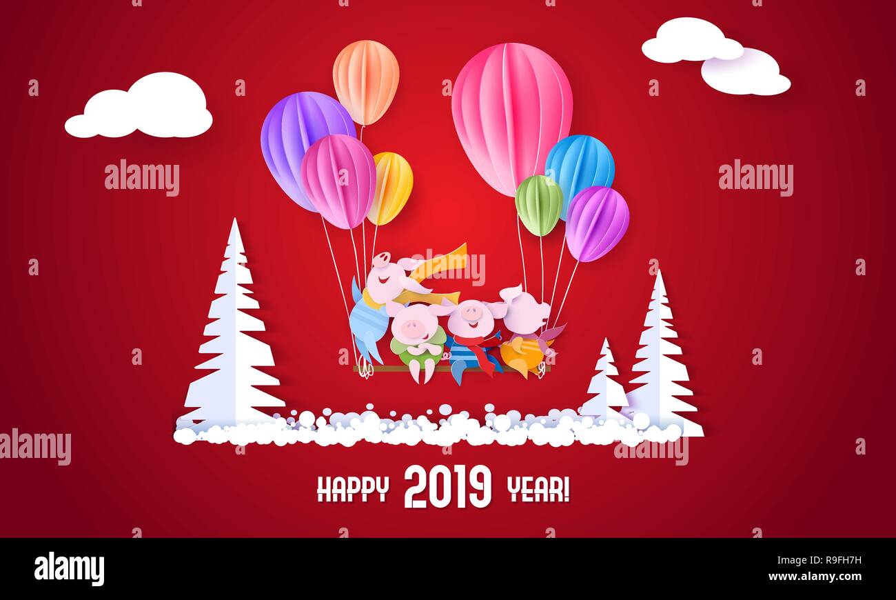 Télécharger gratuitement Carte De Vacances D Hiver Avec Le Porc Drole Illustration De