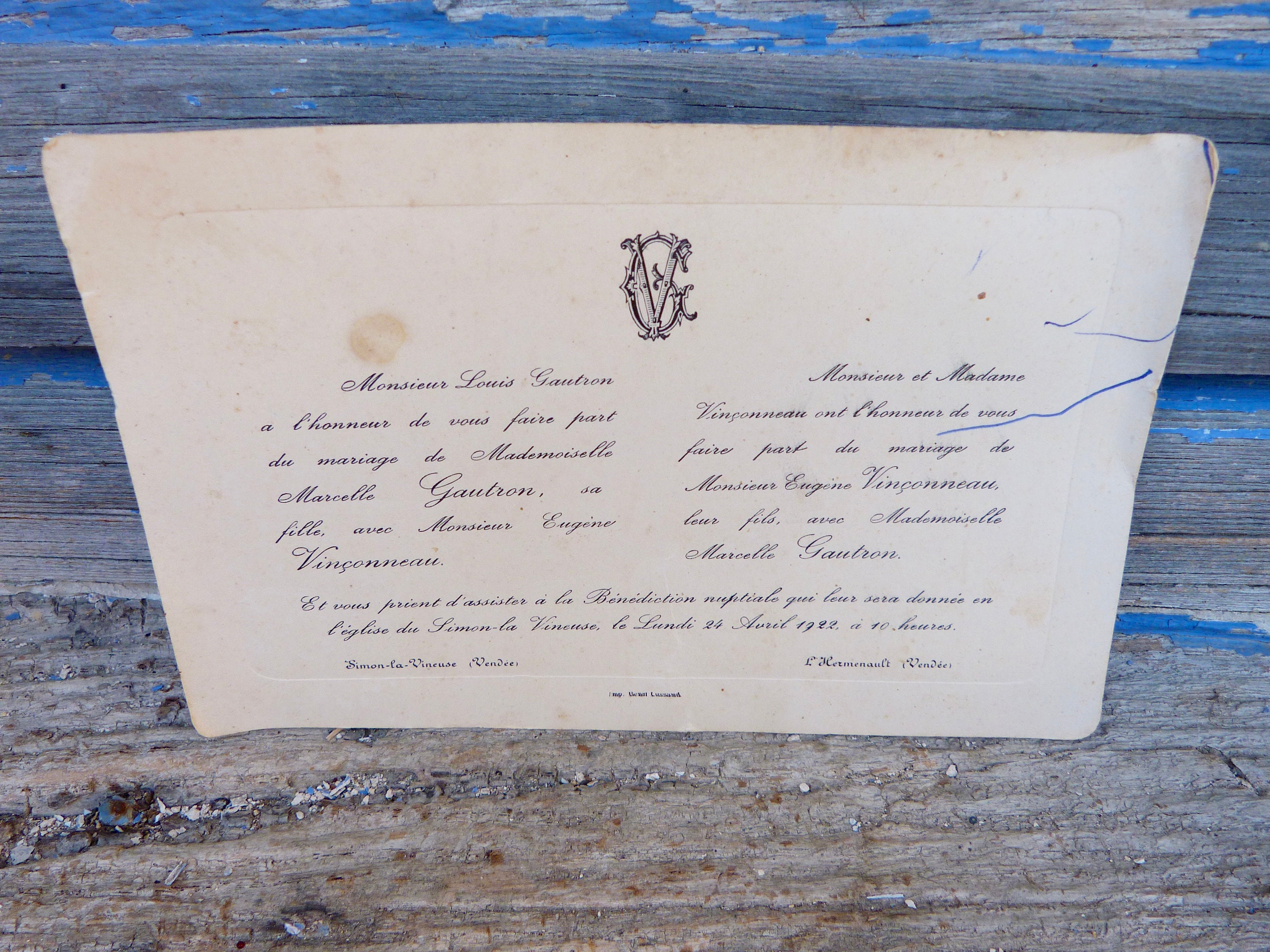 Scarica Gratis Vintage Antique 1920s French Faire Part De Mariage Wedding Etsy