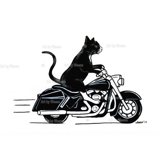 Scarica Gratis Chat Chat Noir Chat Sur La Moto Drole De Chat Art Art Etsy