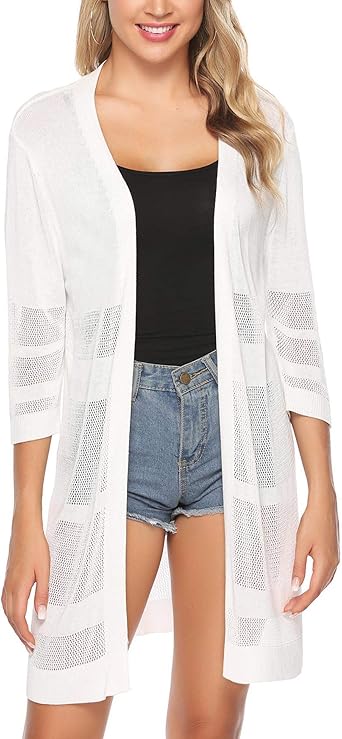 Téléchargement gratuit Sykooria Cardigan Femme Bras 3 4 Ample Elegant Couleur Unie Drole
